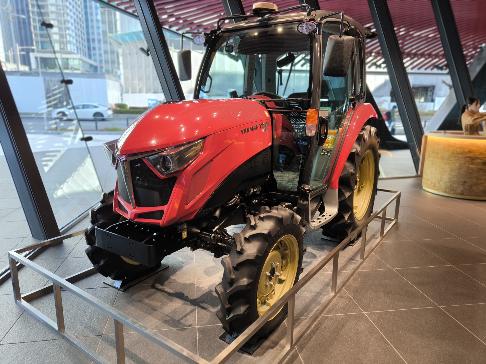 館内には、ヤンマーが誇るイカしたデザインのトラクター「YT357」が展示されています。